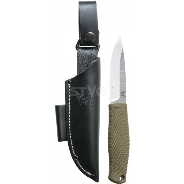 Американська "фінка" від Benchmade - це новий погляд на зручну класику. З твердою сталлю марки 3V і зручною рукояткою з нековзкого сантопрену працювати одне задоволення. Сталь CPM® 3V ™ - високоміцна зносостійка інструментальна порошкова сталь американської металургійної компанії «Crucible Industries». За ударною в'язкістю CPM 3V перевершує такі сталі, як, D2, Cru-Wear, CPM M4 і відмінно тримає силові і рубаючі навантаження. Це означає, що можна давати ножу з CPM 3V великі навантаження при тій же товщині зведення спусків і дає можливість зробити зведення ще тонше, а значить і різати таким ножем буде легше. CPM 3V є однією з найбільш механічно міцних і в'язких сталей. Чудовий баланс твердості, зносостійкості і міцності. Не будучи на 100% нержавіючої, CPM 3V, все ж має досить високу корозійну стійкість, тому ножі з неї хоч і вимагають догляду, але не бояться застосування в корозійно-активних середовищах. Така сталь поєднує в собі "різучість" вуглеродок і покращені позитивні якості сучасних інструментальних напівнержавійок. Епоха швидко "сідаючих" польових або аутдорних ножів позаду, адже тепер є прекрасна зносостійка фінка Benchmade 200 Puukko.