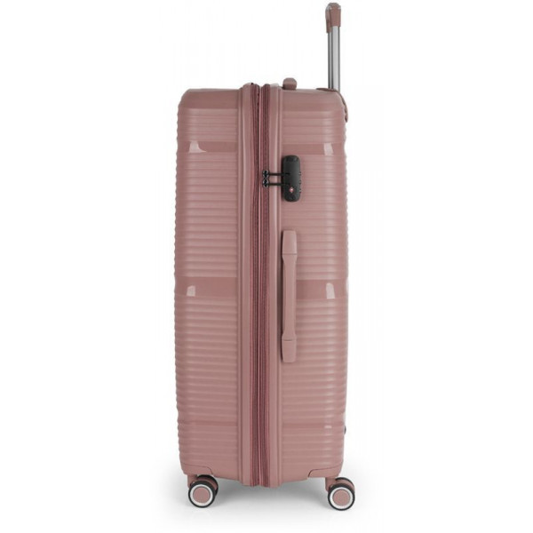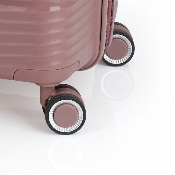 Валіза Gabol Akane (L) Pink (122447-019) оснащена чотирма здвоєними колесами з можливістю незалежного розвороту на 360°. Конструкцією передбачений рівномірний розподіл навантаження на кожне колесо, що в свою чергу сприяє плавному руху та маневреності валізи, докладаючи при цьому мінімум зусиль. Колеса виготовлені з високотемпературного термопластичного поліуретану (TPU). Даний матеріал має міцність порівнянну з пластиком, гнучкість силікону, а також підвищену стійкість до перепадів температури. Відмінною особливістю коліс із TPU є зниження шуму до мінімуму під час руху валізи. Завдяки стійкості до стирання, матеріал коліс відрізняється тривалим терміном експлуатації.
