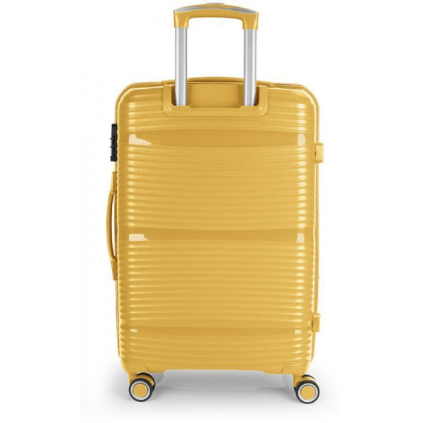 Валіза Gabol Akane (M) Mustard (122446-027) оснащена чотирма здвоєними колесами з можливістю незалежного розвороту на 360°. Конструкцією передбачений рівномірний розподіл навантаження на кожне колесо, що в свою чергу сприяє плавному руху та маневреності валізи, докладаючи при цьому мінімум зусиль. Колеса виготовлені з високотемпературного термопластичного поліуретану (TPU). Даний матеріал має міцність порівнянну з пластиком, гнучкість силікону, а також підвищену стійкість до перепадів температури. Відмінною особливістю коліс із TPU є зниження шуму до мінімуму під час руху валізи. Завдяки стійкості до стирання, матеріал коліс відрізняється тривалим терміном експлуатації.