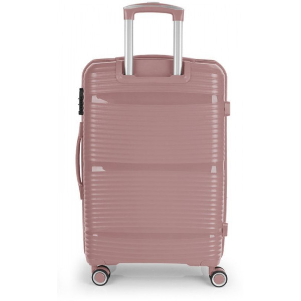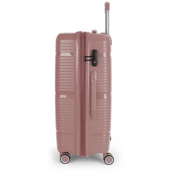 Валіза Gabol Akane (M) Pink (122446-019) оснащена чотирма здвоєними колесами з можливістю незалежного розвороту на 360°. Конструкцією передбачений рівномірний розподіл навантаження на кожне колесо, що в свою чергу сприяє плавному руху та маневреності валізи, докладаючи при цьому мінімум зусиль. Колеса виготовлені з високотемпературного термопластичного поліуретану (TPU). Даний матеріал має міцність порівнянну з пластиком, гнучкість силікону, а також підвищену стійкість до перепадів температури. Відмінною особливістю коліс із TPU є зниження шуму до мінімуму під час руху валізи. Завдяки стійкості до стирання, матеріал коліс відрізняється тривалим терміном експлуатації.