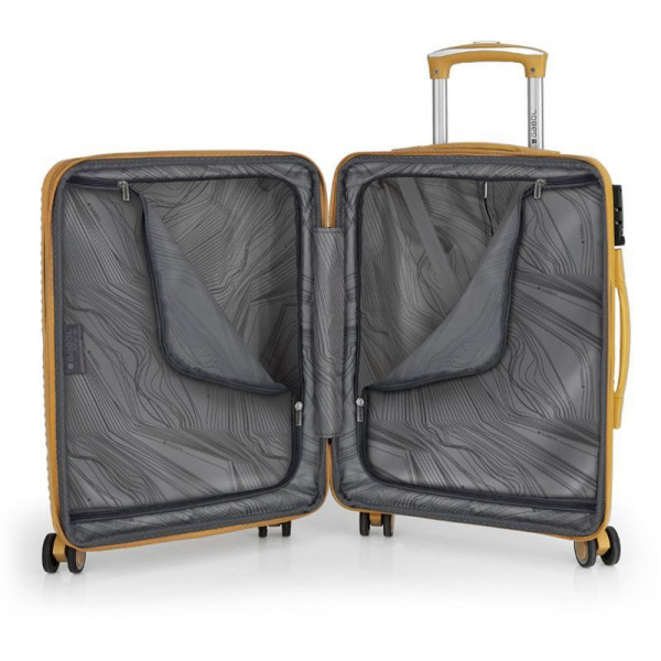 Корпус валіз Gabol серії Akane виконаний із міцного та довговічного матеріалу - поліпропілену, що дуже важливо для валіз, які перевозяться в багажних відділеннях. Внутрішній простір розділений перегородкою на два відділення з ременями для фіксації речей усередині. Модель має функцію розширення, що дозволяє за необхідності збільшити об'єм валізи до 41 літра.
