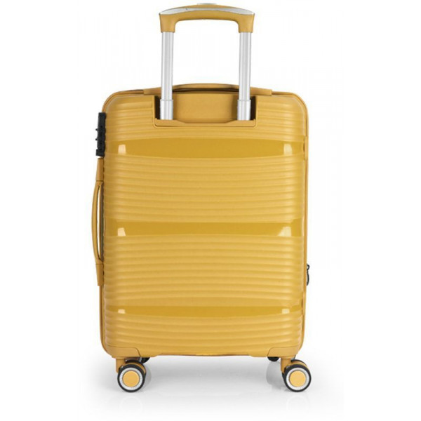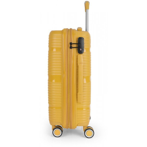 Валіза Gabol Akane (S) Mustard (122422-027) оснащена чотирма здвоєними колесами з можливістю незалежного розвороту на 360°. Конструкцією передбачений рівномірний розподіл навантаження на кожне колесо, що в свою чергу сприяє плавному руху та маневреності валізи, докладаючи при цьому мінімум зусиль. Колеса виготовлені з високотемпературного термопластичного поліуретану (TPU). Даний матеріал має міцність порівнянну з пластиком, гнучкість силікону, а також підвищену стійкість до перепадів температури. Відмінною особливістю коліс із TPU є зниження шуму до мінімуму під час руху валізи. Завдяки стійкості до стирання, матеріал коліс відрізняється тривалим терміном експлуатації.