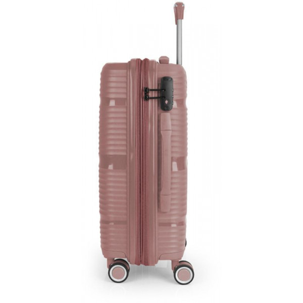 Валіза Gabol Akane (S) Pink (122422-019) оснащена чотирма здвоєними колесами з можливістю незалежного розвороту на 360°. Конструкцією передбачений рівномірний розподіл навантаження на кожне колесо, що в свою чергу сприяє плавному руху та маневреності валізи, докладаючи при цьому мінімум зусиль. Колеса виготовлені з високотемпературного термопластичного поліуретану (TPU). Даний матеріал має міцність порівнянну з пластиком, гнучкість силікону, а також підвищену стійкість до перепадів температури. Відмінною особливістю коліс із TPU є зниження шуму до мінімуму під час руху валізи. Завдяки стійкості до стирання, матеріал коліс відрізняється тривалим терміном експлуатації.