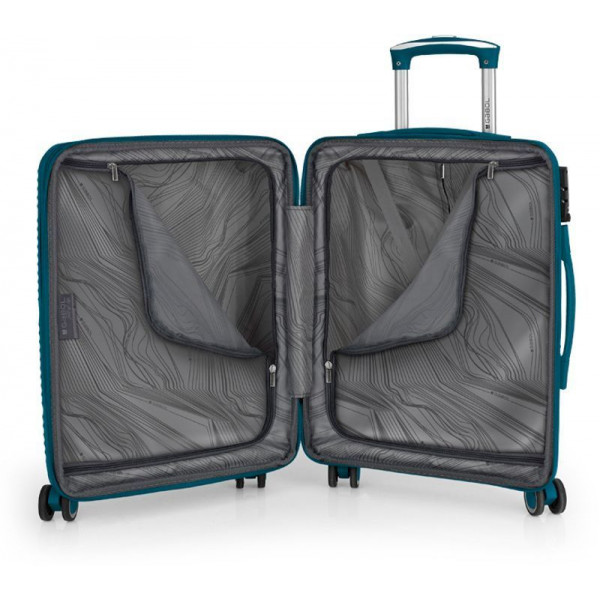 Корпус валіз Gabol серії Akane виконаний із міцного та довговічного матеріалу - поліпропілену, що дуже важливо для валіз, які перевозяться в багажних відділеннях. Внутрішній простір розділений перегородкою на два відділення з ременями для фіксації речей усередині. Модель має функцію розширення, що дозволяє за необхідності збільшити об'єм валізи до 41 літра.