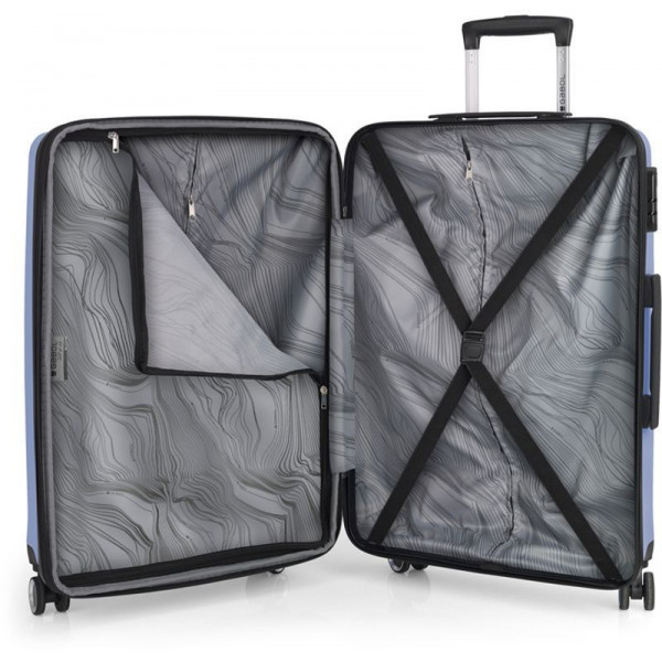 Корпус валіз Gabol серії Kume виконаний із міцного та довговічного матеріалу - поліпропілену, що дуже важливо для валіз, які перевозяться в багажних відділеннях. Внутрішній простір розділений перегородкою на два відділення з ременями для фіксації речей усередині. Модель має функцію розширення, що дозволяє за необхідності збільшити об'єм валізи до 77,7 літрів.