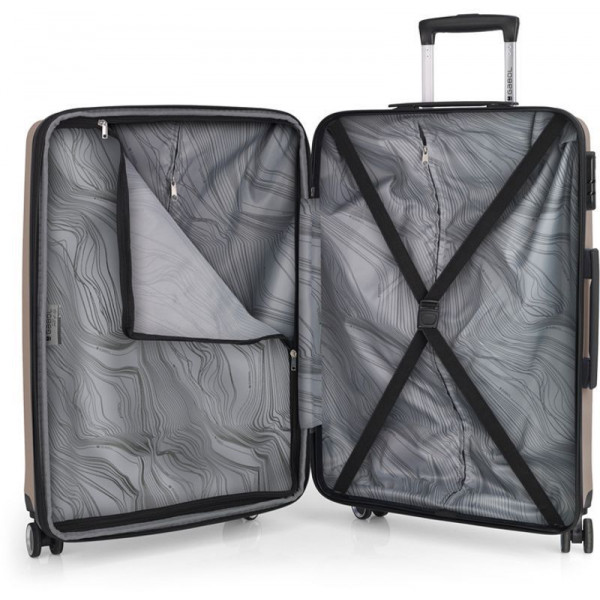 Корпус валіз Gabol серії Kume виконаний із міцного та довговічного матеріалу - поліпропілену, що дуже важливо для валіз, які перевозяться в багажних відділеннях. Внутрішній простір розділений перегородкою на два відділення з ременями для фіксації речей усередині. Модель має функцію розширення, що дозволяє за необхідності збільшити об'єм валізи до 44 літрів.