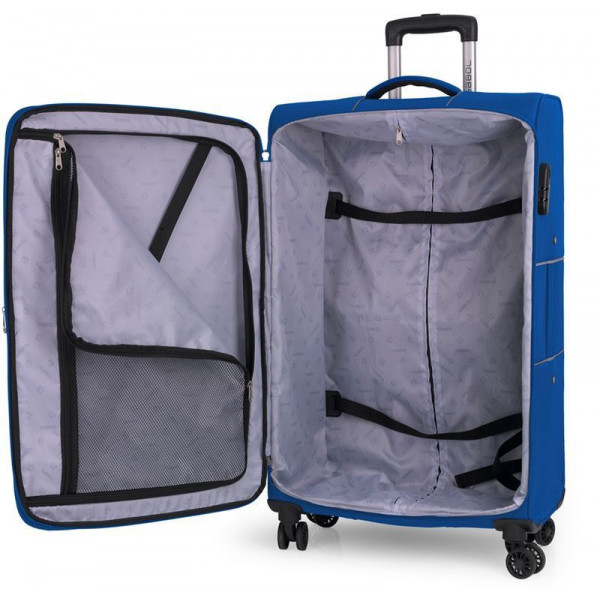 Класична валіза Gabol серії Lisboa з широким функціоналом. Каркас дна легкий та міцний. Валіза має зовнішній карман та одне основне відділення з ременями для фіксації речей. Одне сітчате відділення та карман для ноутбука, або документів на внутрішній стороні кришки. Тильна сторона валізи містить ідентифікатор, що полегшує її пошук у разі втрати. Валіза обладнана розширювальним клапаном, який за необхідності дозволяє збільшити об'єм до 113 літрів.