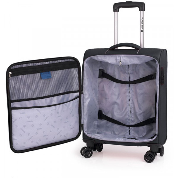 Класична валіза Gabol серії Lisboa з широким функціоналом. Каркас дна легкий та міцний. Валіза має одне основне відділення з ременями для фіксації речей, одне сітчате відділення на кришці, а також карман для 17,3 дюймового ноутбука із швидким доступом з лицевої сторони. Тильна сторона валізи містить ідентифікатор, що полегшує її пошук у разі втрати.