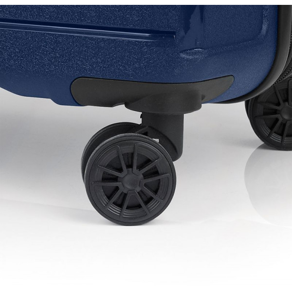 Валіза Gabol Osaka (L) Blue (121047-003) оснащена чотирма здвоєними колесами з можливістю незалежного розвороту на 360°. Конструкцією передбачений рівномірний розподіл навантаження на кожне колесо, що в свою чергу сприяє плавному руху та маневреності валізи, докладаючи при цьому мінімум зусиль. Колеса виготовлені з високотемпературного термопластичного поліуретану (TPU). Даний матеріал має міцність порівнянну з пластиком, гнучкість силікону, а також підвищену стійкість до перепадів температури. Відмінною особливістю коліс із TPU є зниження шуму до мінімуму під час руху валізи. Завдяки стійкості до стирання, матеріал коліс відрізняється тривалим терміном експлуатації.