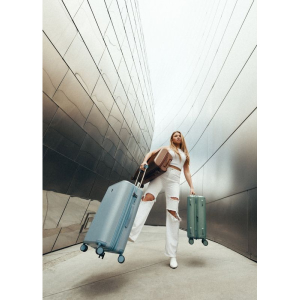Валіза оснащена чотирма поворотними колесами Spinner з можливістю незалежного розвороту кожного колеса на 360°. Системою передбачено рівномірний перерозподіл навантаження на кожне колесо, що сприяє плавному руху і маневреності валізи, докладаючи при цьому мінімум зусиль.