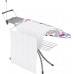 Інноваційна прасувальна дошка Advance від компанії Gimi - надійна, міцна, адаптована для прасування всіляких видів білизни та одягу.Конструкція обладнана підставкою для праски або середнього за габаритами парогенератора. Підставка доповнена спеціальним поворотним механізмом для людей, які переважно використовують ліву руку.Широка робоча поверхня дошки дозволяє з легкістю випрасувати білизну різних форм і великих розмірів, штори або двоспальні постільні набори. Для додаткового комфорту модель оснащена тримачем для кабелю, розкладним кронштейном для тремпелів, телескопічною висувною підставкою і полицею для білизни.
