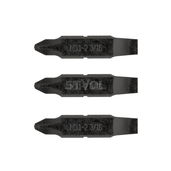 Набор из трех одинаковых двусторонних бит:№1-№2 крестовая PHILLIPS и плоская 3/16" .