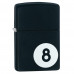 Запальничка Zippo 28432 8-ball Black Matte має матову поверхню чорного кольору, яка стійка до стирання та появи подряпин. На корпус запальнички з лицьового боку нанесено малюнок.