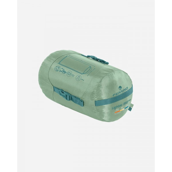 Серія ультралегких спальних мішків Ferrino Lightec має мінімальні розміри при упаковці в компресійний чохол, але при цьому відмінно підходить навіть для користувачів зростом більше 2 метрів. Ferrino Lightec 950 є найлегшим та найкомпактнішим синтетичним спальним мішком прямокутної форми серед моделей із подібним рівнем теплоізоляції. Зовнішний матеріал має посилену структуру Ripstop, що забезпечить додатковий запас надійності. Матеріал наповнювача H.T.F. Compact має визначне співвідношення ваги і термоізоляційних властивостей. Блискавка розстібається як ззовні, так і зсередини, має утеплювальний борт та стропу проти защемлення тканини в замку. Два однакових спальних мішки з лівою та правою блискавкою можна застебнути разом і перетворити на затишний двомісний спальний мішок. Спальний мішок Ferrino Lightec 950 SSQ/+5°C ідеально підходить для тривалих подорожей з рюкзаком, самостійних ультратрейлів і важких походів влітку.
