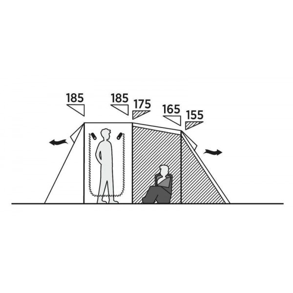 Намет Hamra 4 – це тунельний намет із похилою передньою частиною, розроблений для максимального збільшення житлового простору. Він має вшиту підлогу для захисту від протягів та комах, а також великий бічний вхід та повністю сітчасті двері для універсального використання. Внутрішній намет SleepTight, розроблений з темніших матеріалів та з оптимальною вентиляцією в спальній зоні, забезпечує спокійний нічний сон. Бічне вікно зі шторкою, що згортається, та сітчастими панелями спереду покращують потік повітря. Житлова зона пропонує висоту для стояння, знімні та розділені спальні для забезпечення приватності, а також кишені-органайзери по всій площі. Завдяки електричному доступу та регульованій задній вентиляції.