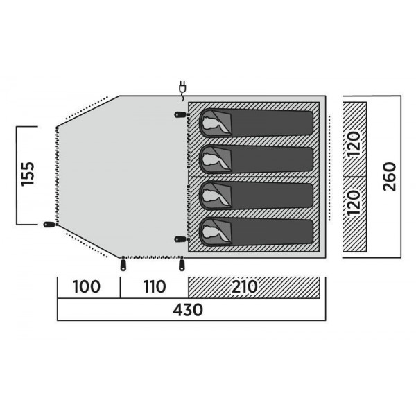 Розміри намету становить: 430 × 185 × 260 см