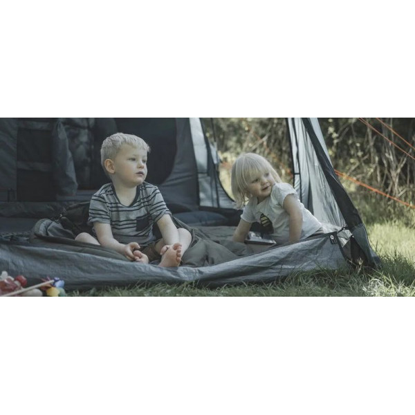 Намет Hamra 5 – це просторий тунельний намет із похилою передньою частиною для максимального збільшення житлового простору. Він має вшиту підлогу для захисту від протягів та комах, великий бічний вхід із повністю сітчастими дверима та внутрішній намет SleepTight із темними стінами внутрішнього намету сприяє швидкому засинанню, а додаткове бокове вікно із закидуваною шторкою та регульована задня вентиляція підтримують комфортний мікроклімат усередині.