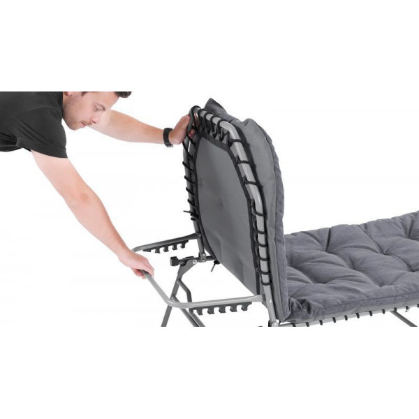 Ви переконаєтеся, що універсальний дизайн Outwell Fontana Lake дозволяє швидко та легко влаштуватися зручно. Ви просто складаєте його, і воно готове до використання, незалежно від того, чи лежите ви, чи насолоджуєтеся чотирма варіантами положення спинки. Ви можете використовувати його як запасне ліжко або як солярій, а одна ніжка в кінці забезпечує додаткову стійкість під час вставання.