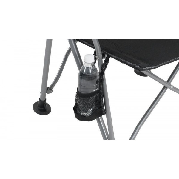 Outwell Campo Black (470233) - розкладний стілець із м'якими підлокітниками та знімним підстаканником. Каркас виготовлений із високоміцної сталі з порошковим фарбуванням та витримує навантаження до 150 кг. Збільшені опори ніжок підвищують стійкість на м'якому ґрунті. Чохол для перенесення полегшує транспортування та забезпечує компактне зберігання, коли стілець не використовується.