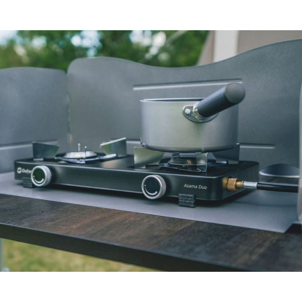 Відчуйте зручність та універсальність портативної газової плити Outwell Asama Duo з двома конфорками. Розроблена для приготування їжі в дорозі, вона використовує невеликі, зручні газові картриджі та гнучкі шланги, що робить її ідеальною для використання на місці, на пляжі або під час пікніків. Легка конструкція забезпечує швидке та ефективне приготування їжі, а міцні не ковзкі ніжки на кожному куті забезпечують стійкість. Outwell Asama Duo легко чиститься та оснащена міцними, стильними ручками з цинкового сплаву для точного регулювання температури, що робить її вашим надійним супутником у всіх ваших кулінарних пригодах на свіжому повітрі.