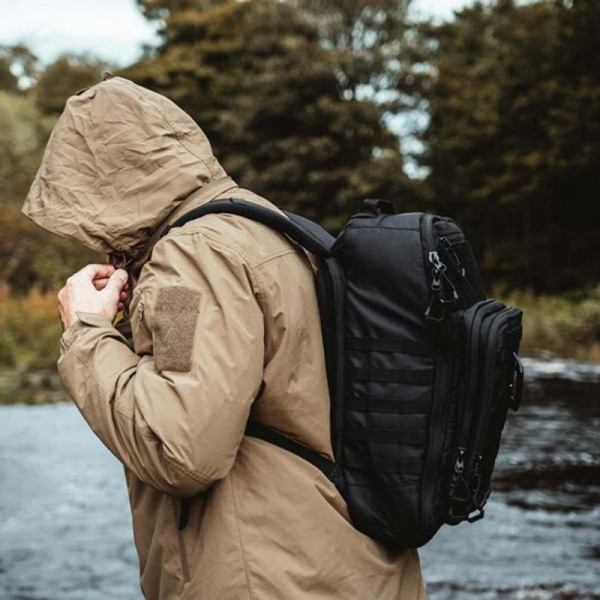 Постачається з універсальним багатоцільовим карабіном MOLLE з ABS-пластику і з 3-сторонніми петлями MOLLE для кріплення тактичних аксесуарів.