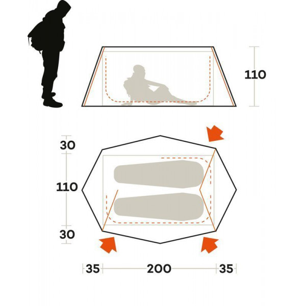 - Зовнішній тент: Nylon RIPSTOP 10D Silicone., водостійкість 2000 мм в. ст.,