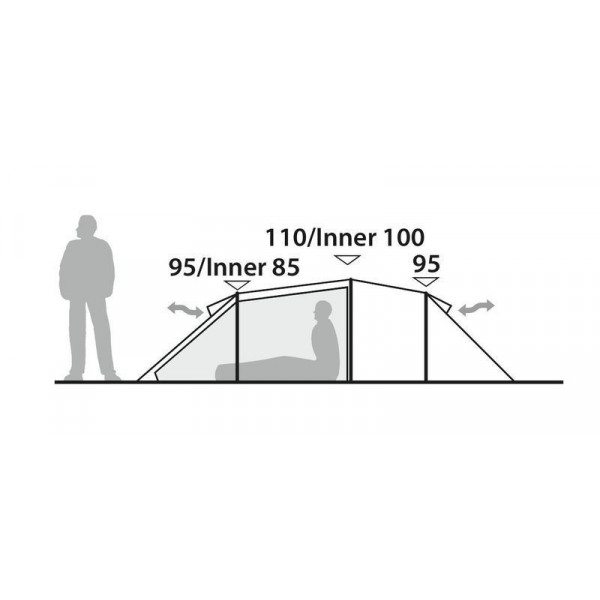 - Матеріал зовнішнього тента: HydroTex Core - не розтягується в вологих умовах, тканина намету має заводську обробку протипожежною сумішшю відповідно до стандарту EN ISO 5912.