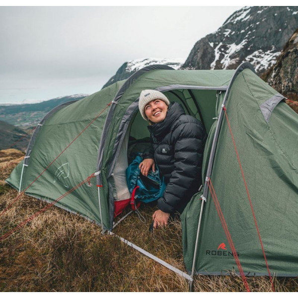 Тунельний намет Robens Sage 3 Pro має комфортний житловий простір для трьох осіб, є стійким і простим у встановленні. Він має одні бічні двері, що ведуть на простору веранду з достатнім місцем для зберігання речей та простором над головою, щоб сидіти та відпочивати в негоду. Вага все ще достатньо низька, тому двоє людей можуть розглянути його як просторий варіант, якщо очікується нестабільна погода. Передні та задні вентиляційні отвори створюють потік повітря для мінімізації конденсації.