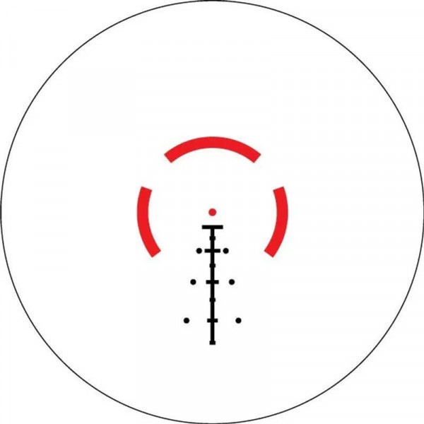Даний тип сітки створений для максимально ефективного використання патрона 5.56 у вашій AR гвинтівці, забезпечуючи як швидке виявлення цілі, так і градуйовану шкалу ялинку для внесення поправок по горизонту на дистанції до 650 ярдів.