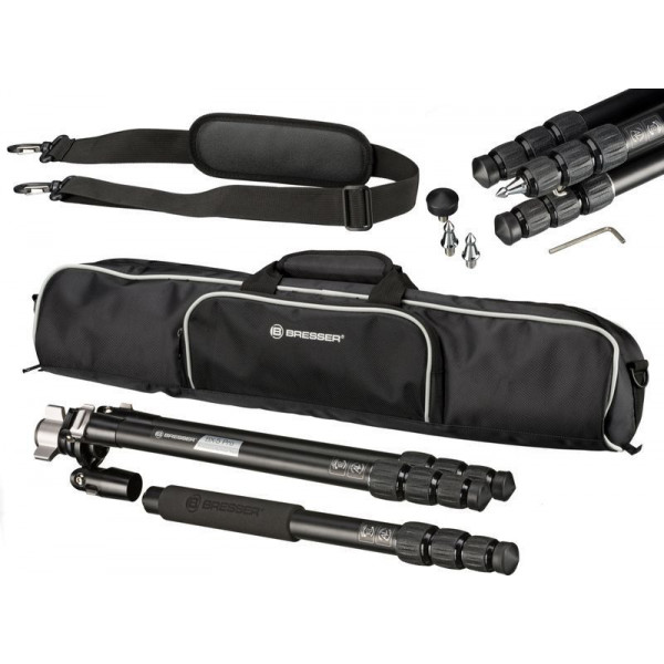 Легкий алюмінієвий штатив преміум-класу Bresser BX-5 Pro (4922701) ідеально підходить для великих біноклів, зорових труб, відеокамер. Безліч функцій, таких як функція монопода або ніжки, що складаються на 180°, роблять штатив універсальним, будь то в польових умовах або в студії. Максимальне навантаження на штатив до 5 кг. Цангові затиски розкладних телескопічних ніжок вважаються одними з найнадійніших серед затисків такого классу. Кожна з ніжок має спеціальні гумові упори для стійкості штатива в будь-якому положенні та на будь-якій поверхні. Штативів Bresser BX-5 Pro (4922701) спеціально розроблений, щоб задовольнити потреби мисливців, любителів спостереження за птахами, природою тощо.