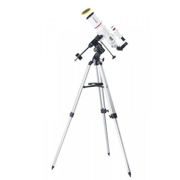 Об'єктив телескопа Bresser Refractor 90/500 EQ3 з сонячним фільтром (4690509) є ахроматом з відносним отвором 1/5.5, завдяки чому значно збільшена світлосила (у 200 разів більше світла, ніж при спостереженнях неозброєним оком). Відсутність у телескопі центрального екранування (порівняно з системою Ньютона) позитивно позначається на контрасті зображення під час спостережень Місяця та деталей дисків планет. Велике поле зору дозволить навіть без застосування видошукача знаходити об'єкти, що цікавлять, і спостерігати такі протяжні об'єкти, як зоряні скупчення. Укорочена труба телескопа зручна під час транспортування. Наприклад, телескоп можна сміливо брати в заміську поїздку, туди де небо, порівняно з міським, темнішим і де набагато докладніше можна розглянути тьмяні далекі об'єкти. Телескоп встановлений на жорсткому монтуванні EQ3 – екваторіального, німецького типу. Завдяки використанню черв'ячних передач у механізмах тонких рухів можлива моторизація монтування (і встановлення системи автонаведення). Висока якість передачі зображень гарантується не тільки стійким монтуванням, а й чудовою якістю просвітленої оптики. Всі елементи оптичних конструкцій телескопів виготовляються зі спеціального скла, на яке наноситься покриття, що просвітлює, в кілька шарів. Саме це дозволяє отримувати світлі та чіткі зображення об'єктів, що спостерігаються, з правильною кольоропередачею, як при візуальних спостереженнях, так і при астрофотографії. Флагманська лінійка телескопів Messier від німецького виробника Bresser відрізняється високою якістю складання, точністю припасування оптичних елементів та використанням тільки високоякісних матеріалів. Тут немає компромісів якості та ціни. Всі вузли, деталі, а також дзеркала телескопа виконані з прецизійною точністю, що надає найкращі оптичні та експлуатаційні характеристики у своєму класі.
