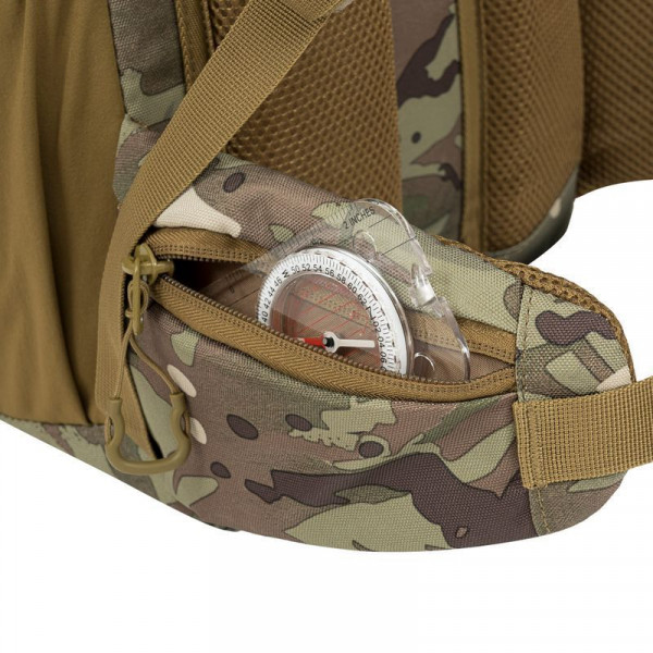 - Окрім основного відділення, двох бічних еластичних кишень, фронтальної кишені та кишені зверху, цей рюкзак має систему кріплень MOLLE для фіксації спорядження, а також він сумісний із питною системою (гідратором).