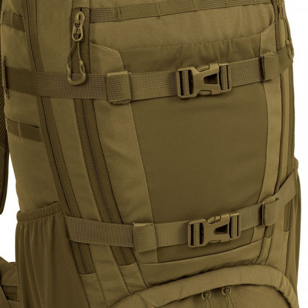 Highlander Eagle 3 Backpack 40L Coyote Tan (TT194-CT) - місткий і надійний рюкзак для тривалих виходів. Модель виготовлена із міцного водостійкого поліестеру 600D XTP із поліуретановим покриттям, має систему кріплень MOLLE, велике відділення на блискавках для зберігання спорядження в польових умовах, а також дві еластичні бічні кишені. М'яка спинка, компресійні ремені та ручка для перенесення роблять цей рюкзак зручним для користування. Регульовані лямки з м’якими підкладками та регульований поясний ремінь розподіляють навантаження, щоб забезпечити Вам комфорт під час щоденного носіння. Все це гарантує, що даний рюкзак витримає тривалу експлуатацію.