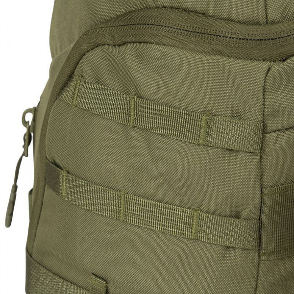 - Окрім основного відділення, двох бічних еластичних кишень та кишені зверху, цей рюкзак має систему кріплень MOLLE для фіксації спорядження, а також він сумісний із питною системою (гідратором).