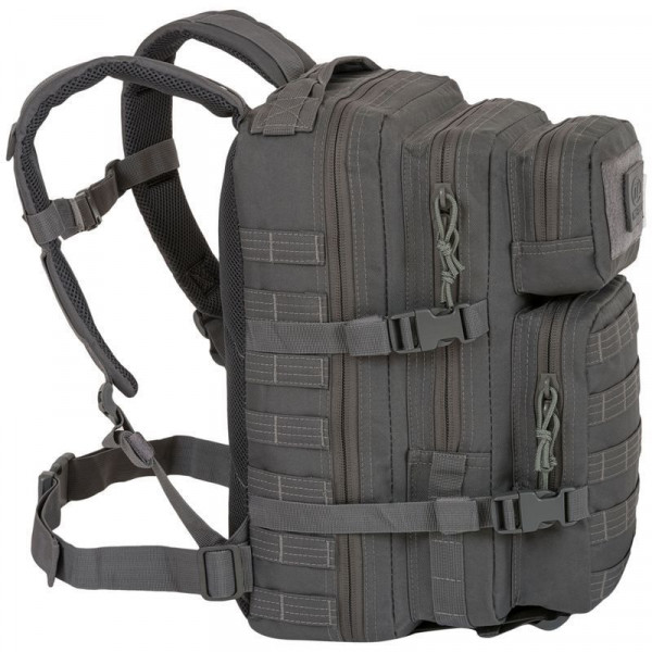 Highlander Recon Backpack 28L Grey (TT167-GY) - компактний і легкий рюкзак для короткотривалих виходів. Модель виготовлена із міцного водостійкого поліестеру 600D XTP, має систему кріплень MOLLE та чотири окремих відсіки на блискавках для зберігання спорядження в польових умовах. Вентильована спинка Airmesh, компресійні ремені та посилена ручка роблять цей рюкзак компактним та зручним для носіння. Регульовані лямки з м’якими підкладками та регульований поясний ремінь розподіляють навантаження, щоб забезпечити Вам комфорт під час щоденного користування. Все це гарантує, що даний рюкзак витримає тривалу експлуатацію.