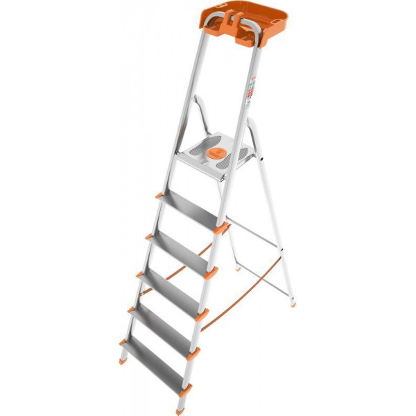 Драбина Colombo Attica 6 щаблів (S108A06P) - 100% алюмінієва драбина, що сертифікована відповідно до стандарту EN131. Загальна вага, яку витримує драбина 150 кілограмів. У комплекті з драбиною міцний лоток для інструменту, за допомогою якого можна кріпити та утримувати на висоті потрібні користувачеві інструменти при використанні драбини. Він витримує вагу до 5 кг. У вас завжди буде все необхідне для зручної роботи. Щаблі мають глибину 8 см. Рифлена поверхня щабля забезпечує підйом і спуск без ковзання. Механізм безпеки запобігає випадковому закриванню під час використання. Компактний розмір дозволяє легко зберігати, займаючи мінімальний простір.