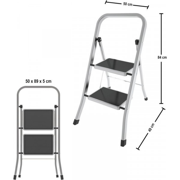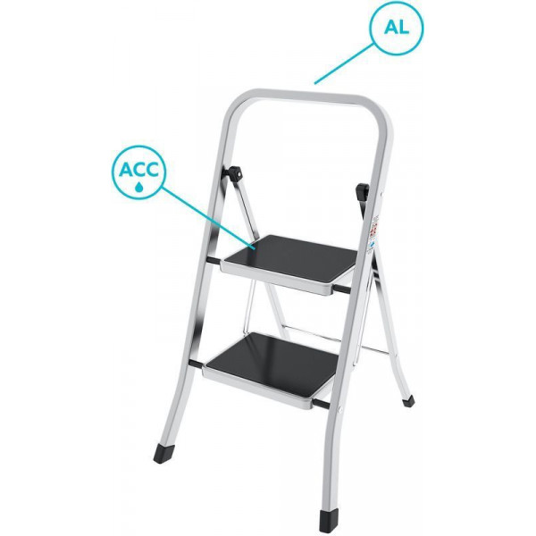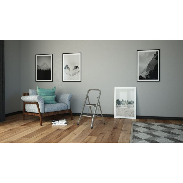 Драбина Colombo Factotum Alu 2 щаблі (G110AT2W) - міцна та надійна. Виготовлена в Італії відповідно до європейського стандарту якості EN 14183. Максимальне навантаження - 150 кг. Ідеально підійде тим, хто цінує практичність, легкість у використанні та стильний дизайн. Модель Factotum Alluminio 2 щаблі (G110AT2W) рекомендовано як для професійного, так і для домашнього використання. Драбина має два зручних щаблі з антиковзним покриттям. Це гарантує безпеку ваших ніг при використанні драбини. Опорні ніжки з пластиковим захистом перешкоджають небажаному ковзанню. Складані щаблі забезпечують мінімальну товщину. Завдяки цій особливості, товщина драбини у складеному вигляді лише 5 см, тому у вас не виникне проблем із місцем для її зберігання.