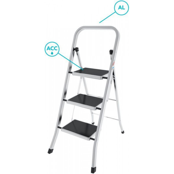 Драбина Colombo Factotum Alu 3 щаблі (G110AT3W) - міцна та надійна. Виготовлена в Італії відповідно до європейського стандарту якості EN 14183. Максимальне навантаження - 150 кг. Ідеально підійде тим, хто цінує практичність, легкість у використанні та стильний дизайн. Модель Factotum Alluminio 3 щаблі (G110AT3W) рекомендовано як для професійного, так і для домашнього використання. Драбина має три зручних щаблі з антиковзним покриттям. Це гарантує безпеку ваших ніг при використанні драбини. Опорні ніжки з пластиковим захистом перешкоджають небажаному ковзанню. Складані щаблі забезпечують мінімальну товщину та максимальну компактність. Завдяки цій особливості, товщина драбини Factotum Alluminio 3 щаблі (G110AT3W) у складеному вигляді лише 5 см, тому у вас не виникне проблем із місцем для її зберігання.
