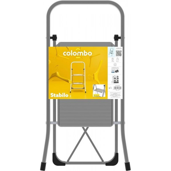 Драбина Colombo Stabilo 2 щаблі (G120L02W)- міцна та надійна. Виготовлена відповідно до європейського стандарту якості EN 14183. Максимальне навантаження - 150 кг. Ідеально підійде тим, хто цінує практичність, легкість у використанні та стильний дизайн. Модель Colombo Stabilo 2 щаблі (G120L02W) рекомендовано як для професійного, так і для домашнього використання. Драбина має два зручних щаблі з антиковзною структурою. Це гарантує безпеку ваших ніг при використанні драбини. Опорні ніжки мають пластиковий захист, який перешкоджає небажаному ковзанню. Складані щаблі забезпечують мінімальну товщину та максимальну компактність. Завдяки цій особливості, товщина драбини у складеному вигляді лише 4,5 см, тому у вас не виникне проблем із місцем для її зберігання.
