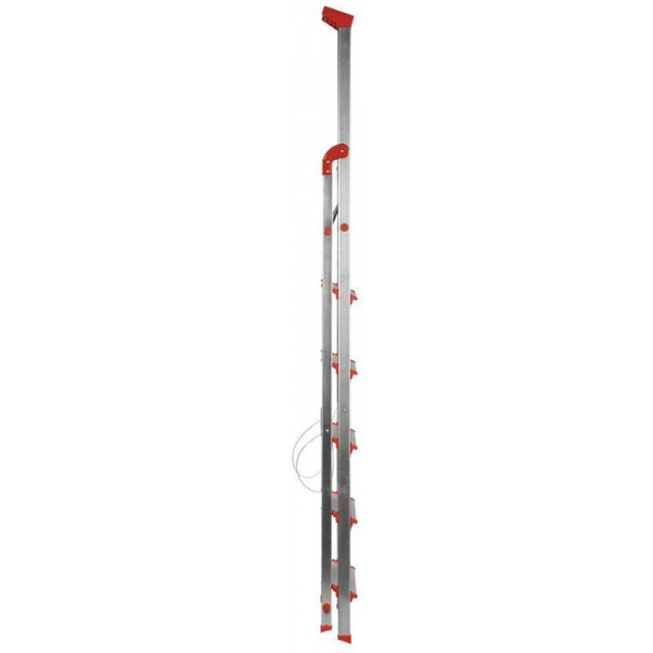 Драбина Rolser Escalera Brico 6 широких щаблів (BRI028) - сертифікована відповідно до європейського стандарту якості UNE-EN131. Максимальне навантаження - 150 кг. Модель рекомендована як для професійного, так і для домашнього використання. Драбина обладнана захистом від випадкового складання. Модель має шість щаблів з антиковзною структурою. Зручна ергономічна полиця для інструментів із вбудованим гаком для навісного інвентарю. Опорні ніжки мають пластиковий захист, який перешкоджає небажаному ковзанню. Петлі з холодноштампованої та лакованої сталі.