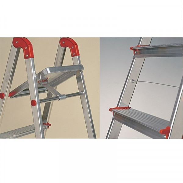 Драбина Rolser Escalera Brico 3 щаблі (BRI001) - сертифікована відповідно до європейського стандарту якості UNE-EN131. Максимальне навантаження - 150 кг. Модель рекомендована як для професійного, так і для домашнього використання. Драбина обладнана захистом від випадкового складання. Модель має три щаблі з антиковзною структурою. Зручна, ергономічна полиця для інструментів із вбудованим гаком для навісного інвентарю. Опорні ніжки мають пластиковий захист, який перешкоджає небажаному ковзанню.