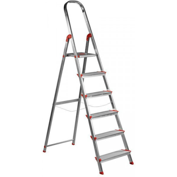 Драбина Rolser Escalera Norma 220 6 щаблів (NOR039) - міцна, універсальна, легка, безпечна. Сертифікована відповідно до європейського стандарту якості UNE-EN131. Максимальне навантаження - 150 кг. Модель рекомендована як для професійного, так і для домашнього використання. Драбина обладнана захистом від випадкового складання. Модель має шість щаблів з антиковзною структурою. Опорні ніжки мають пластиковий захист, який перешкоджає небажаному ковзанню. Дуже широкий щабель. Опорна арка з безпечною висотою 60 см. Бічні пази та поперечні трубки із зварного алюмінію. Петлі з холодноштампованої та лакованої сталі.