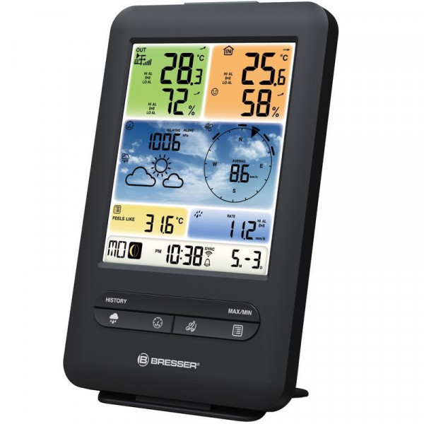 Сучасна метеостанція з прогнозом погоди Bresser Weather Center 5-in-1 V WIFI Professional colour (7002585) забезпечує вимірювання таких важливих метеопараметрів як величина атмосферного тиску, відображає прогноз погоди, швидкість та напрям вітру, температура і відносна вологість повітря, рівень опадів, рівень комфорту в приміщенні та інше. Функціонал станції дозволяє переглядати дані на смартфоні, планшеті чи комп'ютері. Можлива публікація даних на порталі - Weather Underground