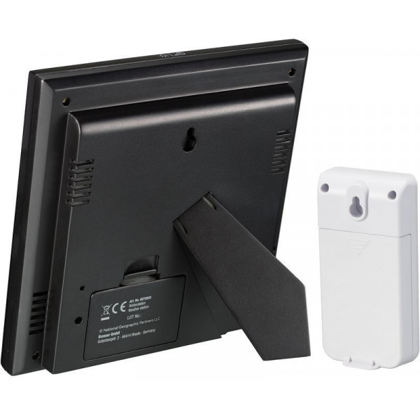 Метеостанція National Geographic VA Colour (Black) (9070600) завдяки кольоровому дисплею LCD та зовнішньому датчику показує вам всю важливу інформацію про погоду. На дисплеї виводиться не лише інформація про внутрішню та зовнішню температуру та вологість, але й точний час DCF, який отримується за допомогою радіочастотного передавача. Також відображається поточний день тижня і дата.