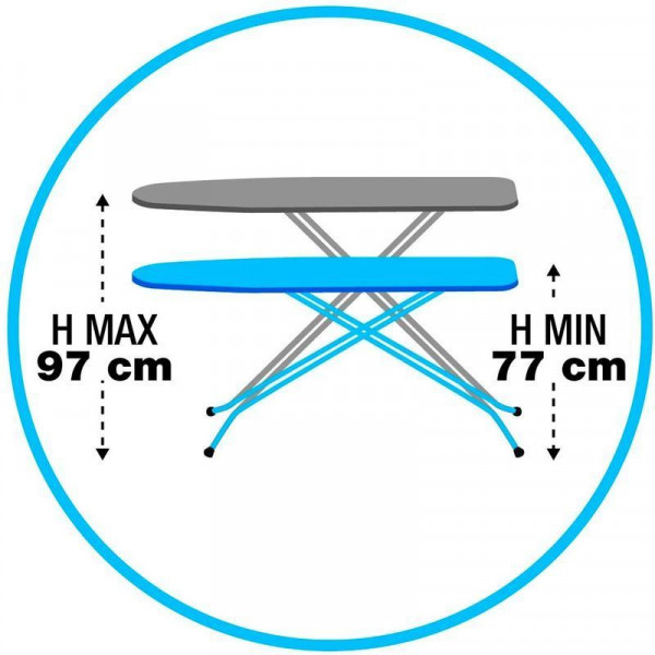 - Багатоступінчаста, регульована висота робочої поверхні дошки. Висота регулюється від 77 до 97 см.