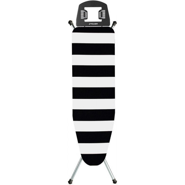 Дошка для прасування Rolser K-22 Blanco/Negro (K06015-2064) - якісний продукт з сучасним дизайном та широким функціоналом. Перфорована основа робочої поверхні запобігає утворенню конденсату. Більш ефективне прасування забезпечується тришаровим бавовняним чохлом, який відбиває тепло та пар. Підставка під праску стійка до високих температур. Модель регулюється по висоті в десятьох положеннях і обладнана автоматичним фіксатором. Трубчасті ніжки надають конструкції стійкості та легко кріпляться до дошки в складеному стані, що унеможливлює її випадкове відкриття.