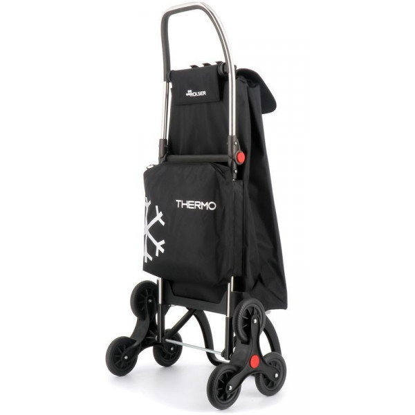 Сумка-візок Rolser I-Max Termo Zen 6L Negro (IMX355-1023) - надійний помічник при поході за продуктами до супермаркету чи на ринок. Особливістю даної моделі є наявність термокишені на чотири літри для заморожених продуктів або охолоджених напоїв. Алюмінієва конструкція візка дозволяє транспортувати вантаж максимальною вагою до 40 кг. Рама 2LRSG має систему для повного складання, а також оснащена адаптером для з’єднання з візком супермаркету. Розкладна основа виконана з алюмінію, а опора - з міцного термостійкого пластику. Шість литих ультралегких коліс сприяють підйому будь-якими сходами. Під час руху рівною поверхнею участь беруть чотири колеса, при цьому вага рівномірно розподіляється по шасі та не навантажує спину. Внутрішня частина рукоятки має пластикове покриття для комфортного транспортування сумки-візка в холодну пору року. Міцний поліестеровий матеріал сумки захистить вміст від дощу та снігу. Знімна сумка, має зручну широку горловину, яка стягується шнуром з фіксатором. Верх сумки накритий захисним клапаном. На дні сумки передбачене вставне дно із пластику.