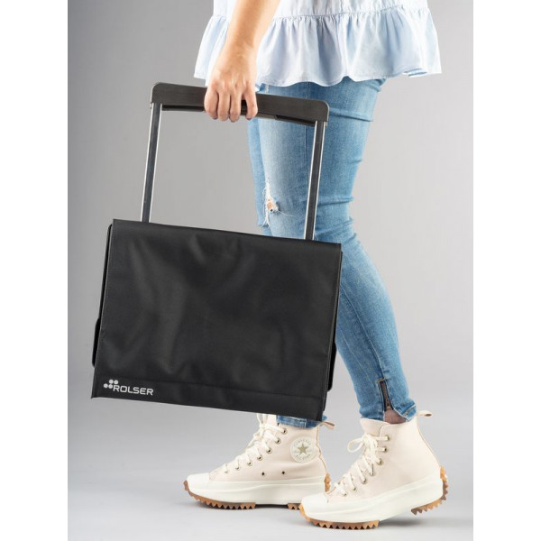 - Фірмове алюмінієве шасі візка дозволяє транспортувати вантаж вагою до 40 кг. Сумка-візок легко складається до компактних розмірів, при цьому сам процес займає лічені секунди.