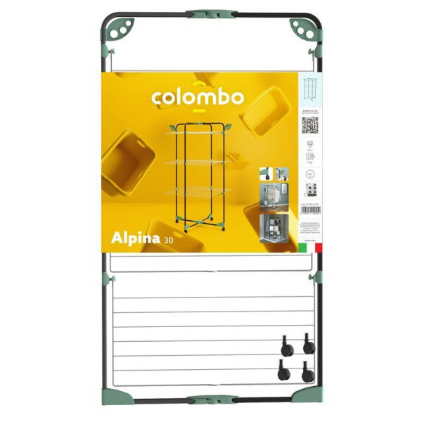 Сушарка для білизни підлогова Colombo Alpina 30 (ST194/3CF) - це сучасне рішення, яке ідеально поєднує в собі високу функціональність і зручність у використанні. Сушарка постачається в зібраному стані, і вам лише треба приєднати комплектні колеса для зручності переміщення. Завдяки модульній конструкції ви можете встановити сушарку в будь-якому зручному місці, навіть у душовій кабіні чи біля стіни, зекономивши простір. Загальна довжина сушарки – тридцять метрів, максимальне навантаження до одинадцяти кілограмів.