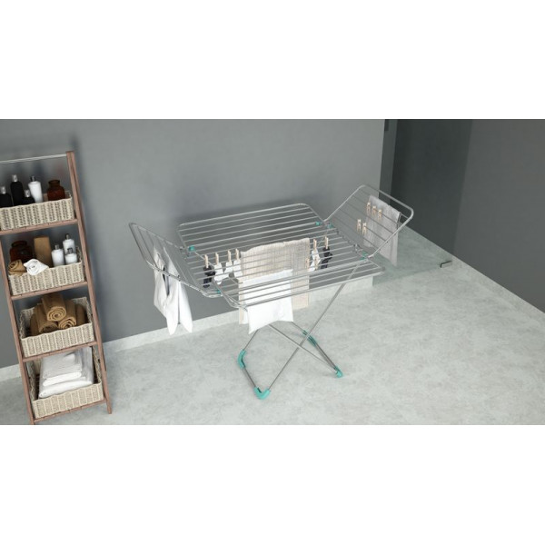 Сушарка для білизни підлогова Colombo Flower (ST798) - класична модель з розширеним функціоналом. Робоча поверхня виготовлена з алюмінію, який стійкий до корозійних процесів, що значно подовжує термін експлуатації. Якість гарантують майстри з Італії, саме там проводяться всі етапи виготовлення деталей та збірки. Загальна робоча довжина складає тридцять метрів, а максимальне навантаження до чотирнадцяти кілограмів. Сушарка має чотири відкидні секції. Ніжки обладнані накладками для захисту підлогових покрівель.